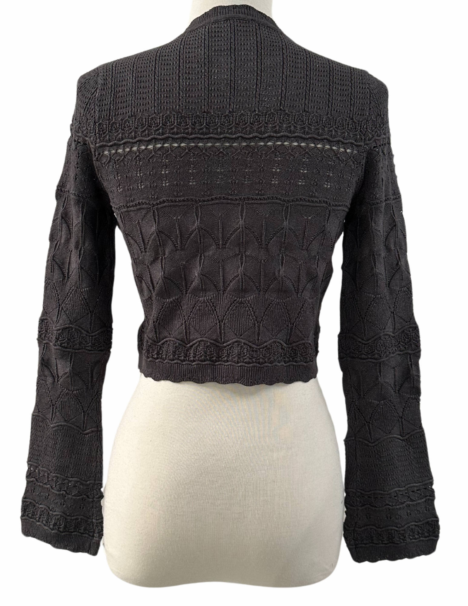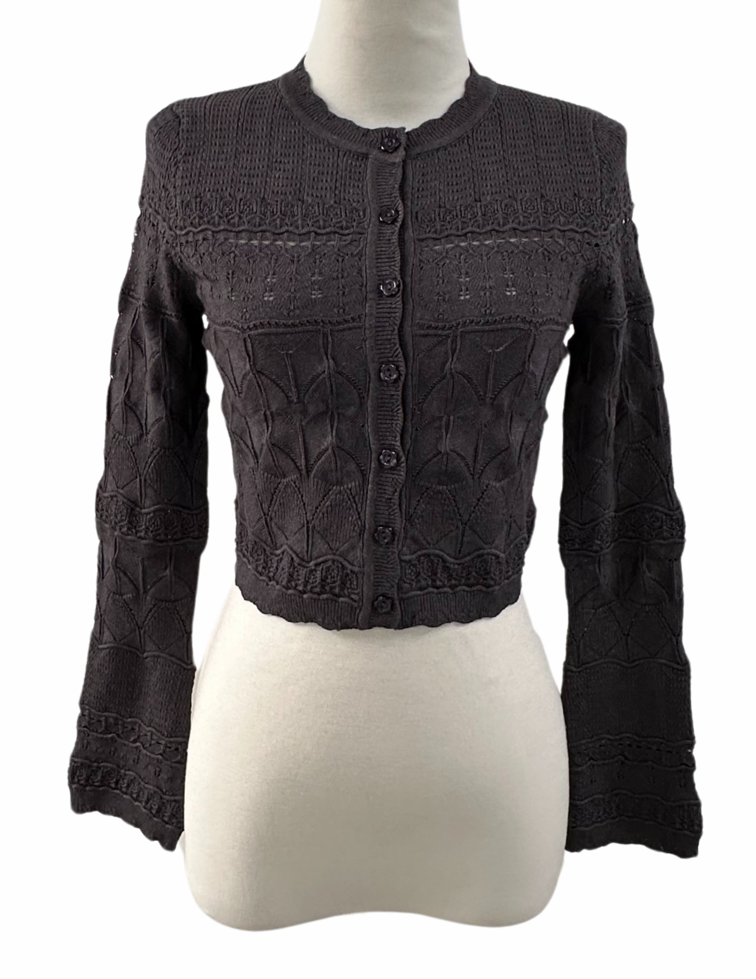 Add a touch of playfulness to your wardrobe with the Willa Top. This knit cardigan features a charming cropped fit and flower buttons, perfect for adding a quirky spin to any outfit. Its front button closure and round neckline make it both stylish and comfortable. (Wear it and feel effortlessly cool!)